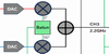 直交IF変調ADMV1013の動作 アナログ直交変調IC ADMV1013は,IF入力とベースバンド入力の切り替え機能を備え,動作帯域は0.8GHzから6GHzと広い.4段階の内蔵フィルタでスプリアスを抑制できる |