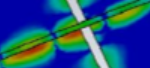 10Gbps信号の電磁界空間放射 直線的な配線では放射が少なく抑えられる傾向があるが,配線を屈曲させた構造にすると,共振やアンテナ作用により放射が増す |