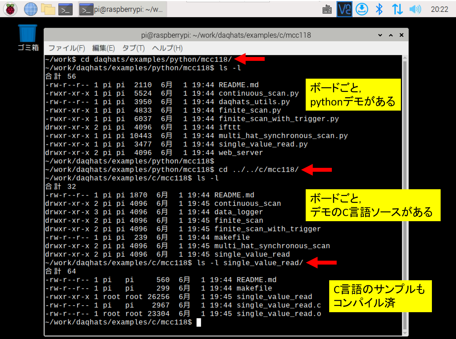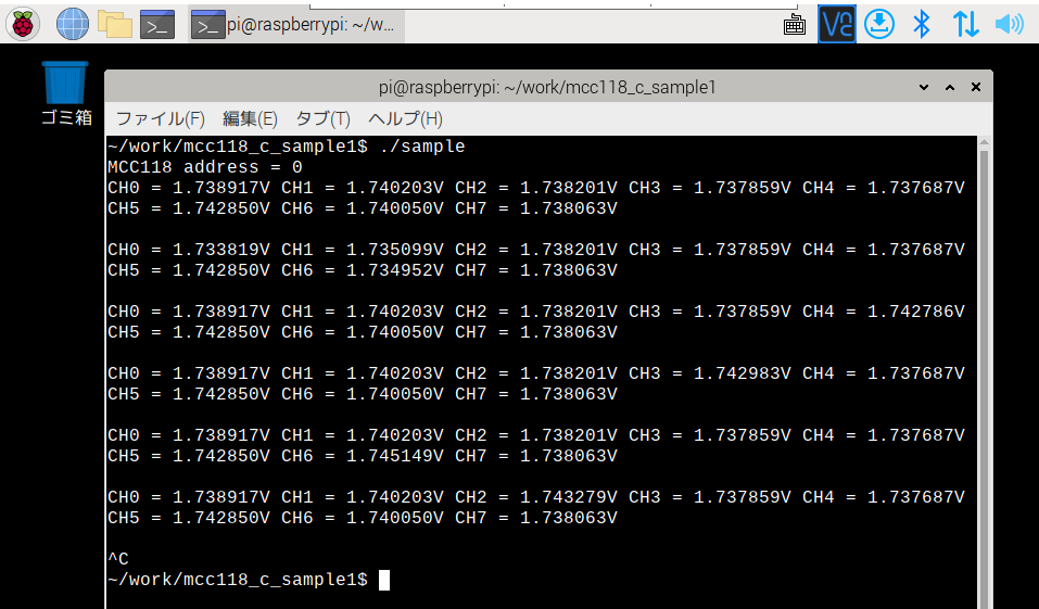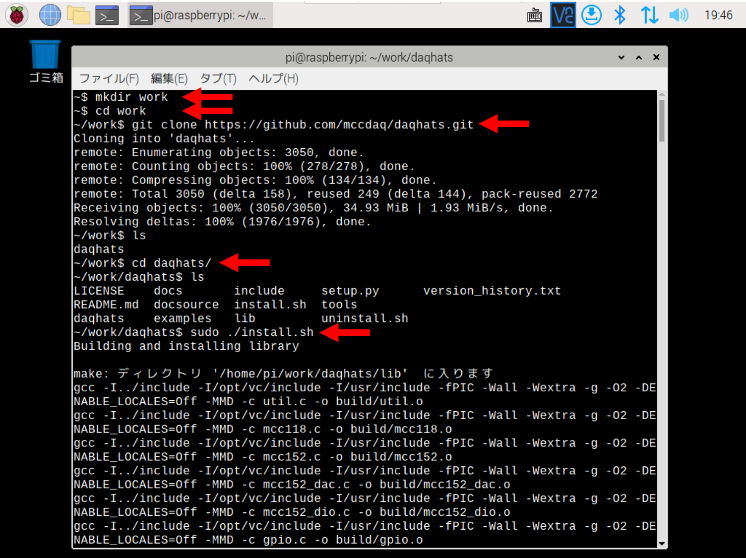 ラズベリー・パイが立ち上がったら,ソフトウェア・ライブラリであるMCC DAQ HAT library for Raspberry Pi(デモも同梱されている)をインストールします.