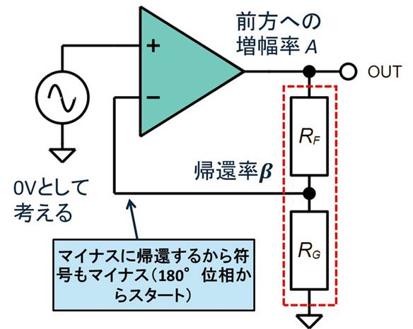 OPアンプのオープン・ループ・ゲインを前方への増幅率$A$とし,帰還率$beta$を,