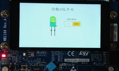 図8に示すように,タッチパネルLCDに表示されたLEDの点滅と,LCDにタッチしてToggle Buttonの動作を確認できれば,OKです.