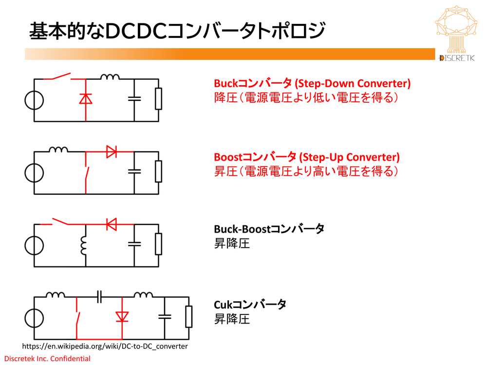 スイッチング電源の基本的なトポロジは,バック・コンバータ(ステップダウン・コンバータ),ブースト・コンバータ(ステップアップ・コンバータ),バック・ブースト・コンバータ,チューク・コンバータなどさまざまあり,用途に応じて選ぶことが重要です.