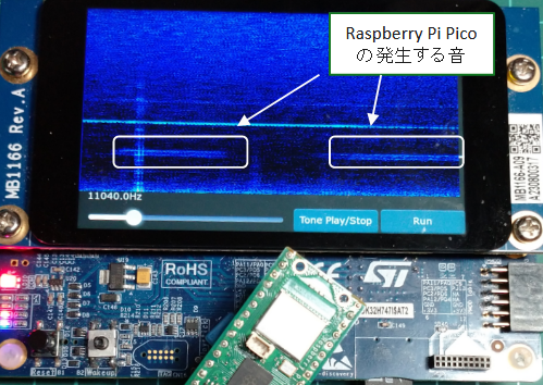 任意周波数のトーンを出力し,ディジタル・マイクで録音した信号からひずみの有無を評価します.STM32H747I-DISCO搭載のWM8994 CODECとMP34DT01-Mマイクにより,60dB以上のS/N比が得られました.