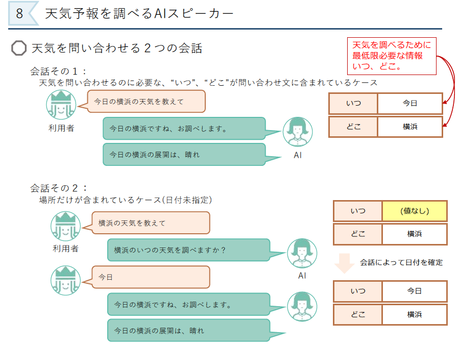 AIスピーカが天気予報を取得する際には,音声認識と自然言語処理が重要な役割を果たします.