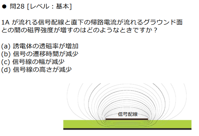 したがって最適な答えは「信号線の幅が減少すると磁界強度が増す」です.これはプリント基板設計の基本的な知識であり,ノイズ対策を考える上で欠かせない視点です.