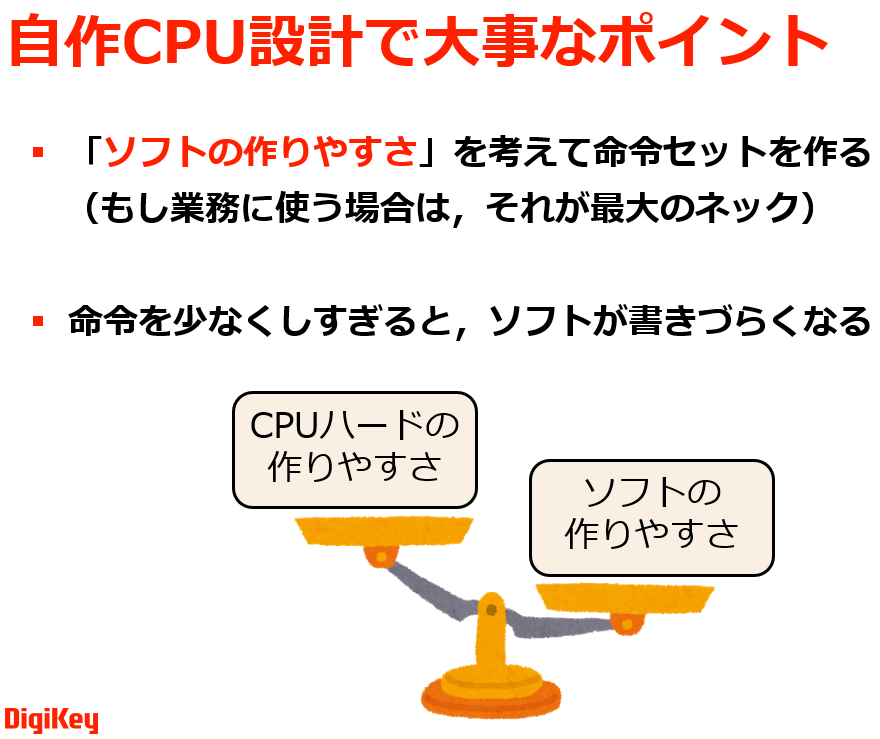 CPUの命令セットを設計する際には,データの入出力,ジャンプ,レジスタの活用といった要素を考慮し,かつ,回路をシンプルに,そしてプログラムを記述しやすくする工夫が求められます.特に,自作CPUではソフトウェアの記述負担を軽減するため,適切な命令処理回路を組み込むことが重要です.