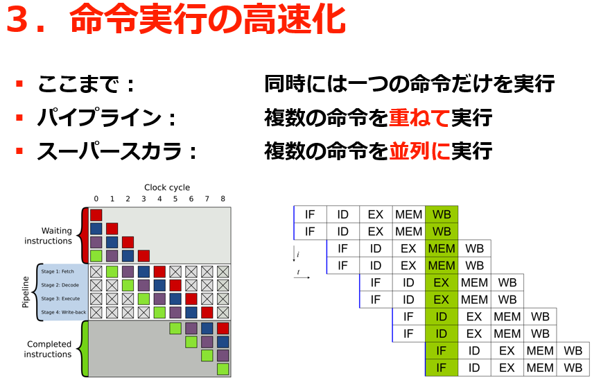 | 図1 CPUを自作するならプログラムを効率的に動かすために,割り込み処理やパイプライン,スタックなどを導入したい.画像クリックで動画を見る.または記事を読む |
