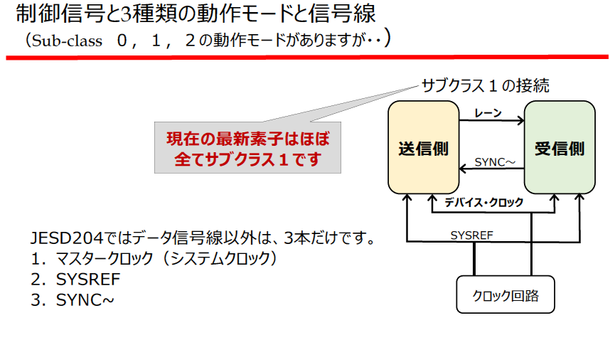 - サブクラス1:SYSREFを使用し,複数デバイスの同期精度を向上