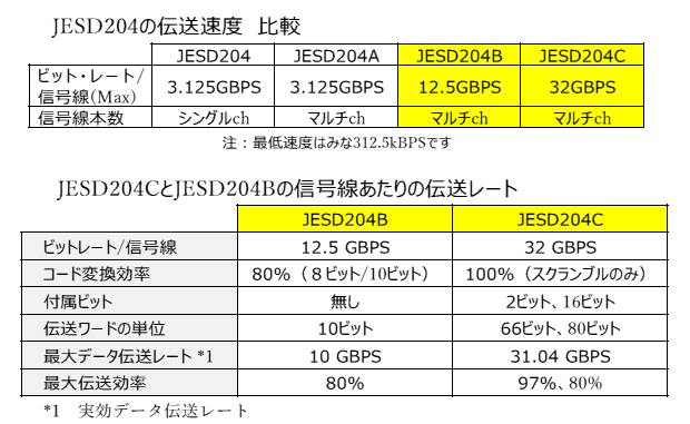 一方,JESD204Cでは32Gbpsで最大31.04Gbps(補助ビット込み)を実現します.