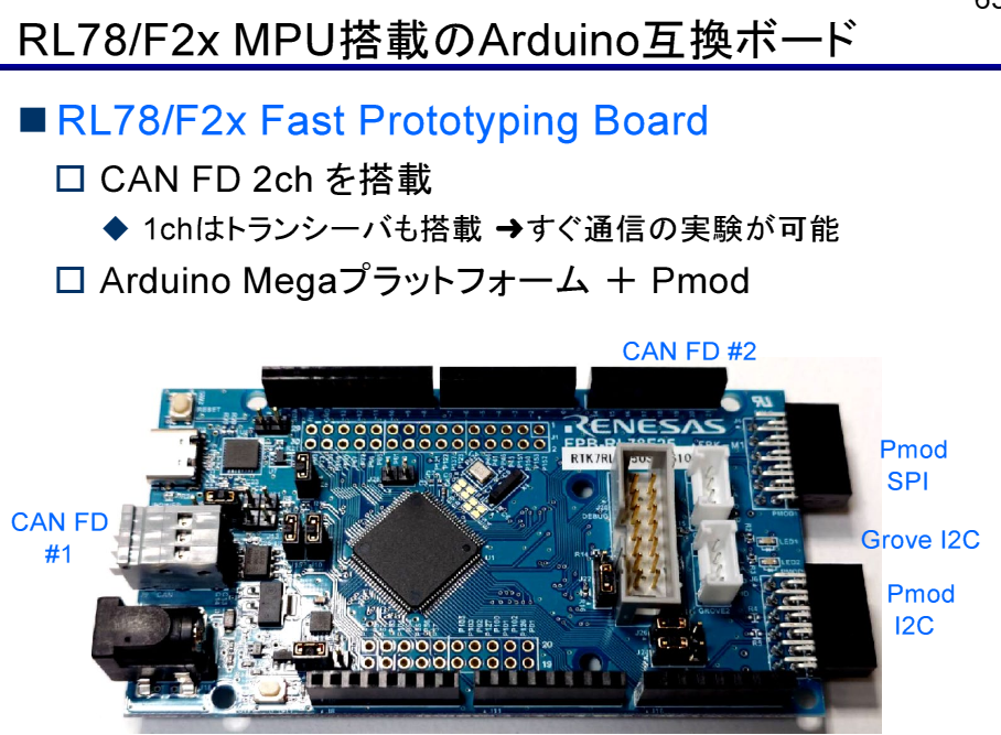 図1 ルネサス エレクトロニクスで開発中のCAN FDを2ch備えるMPU搭載Arduino互換ボード