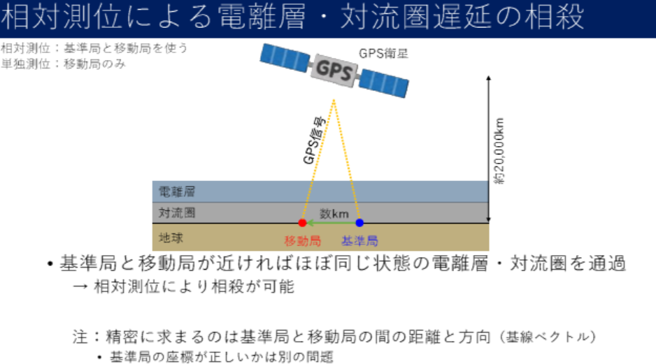 このような条件が整うことで,電離層・対流圏による遅延,衛星軌道の誤差,クロックの誤差などを大きく低減できます.