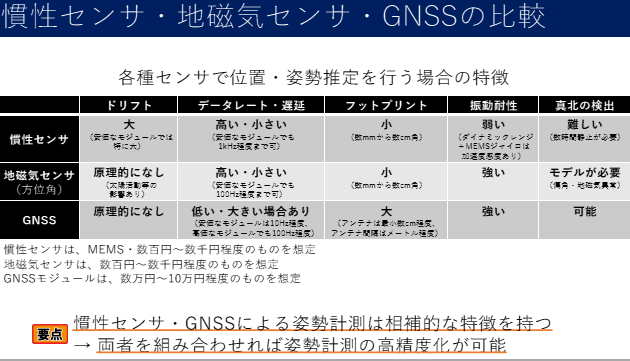 GNSSとIMUの統合による姿勢角測定では,センサ選定における遅延時間や精度,搭載スペースの検討が重要です.用途やリアルタイム性の要件に応じた構成が求められます.