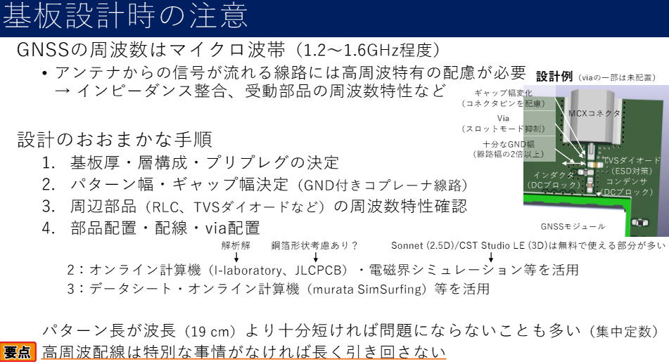 もっとも重要なのは,設計段階で整合の必要性を理解し,無視できない影響がある箇所を重点的に設計・検証することです.GNSSモジュールにおいては,アンテナ入力部やフィルタ出力部が整合性の重要ポイントです.