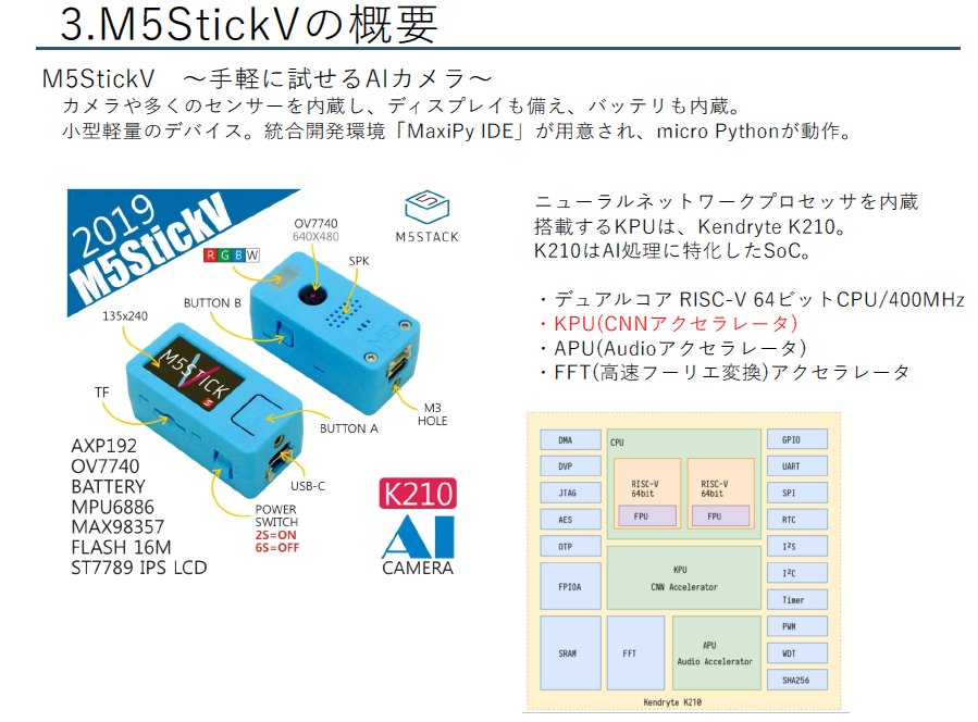 M5StickVの心臓部であるK210チップは,AIカメラの性能を支える重要な要素です.