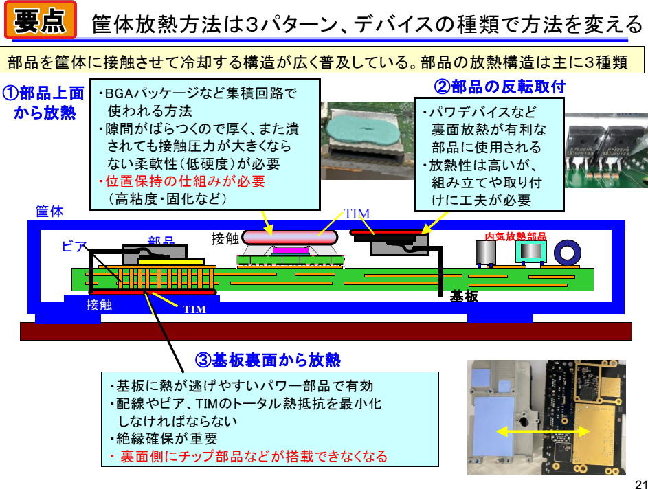 図1 熱伝導シートTIMは,柔らかいシート材,液状のギャップ・フィラ,固化タイプの接着材,熱を加えると相変化を起こす材料など多様化している.画像クリックで動画を見る.または記事を読む.[著]国峯尚樹 詳細:[VOD]高速&エラーレス!5G×EV時代のプリント基板&回路設計100の要点【セッション5】SiC/GaN搭載高エネルギ密度機器・EVインバータの冷却技術 |