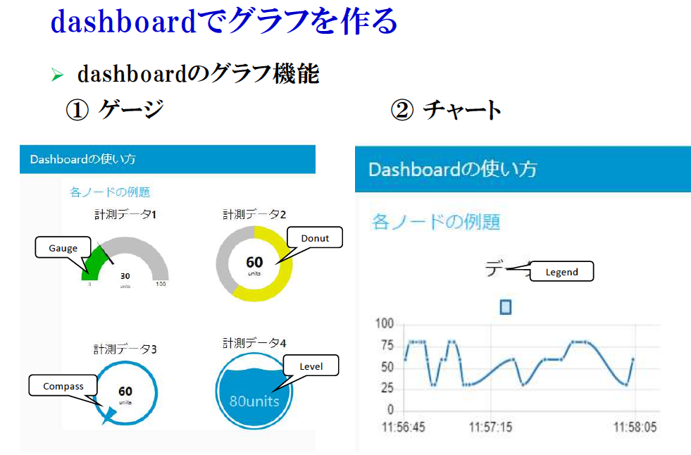 - GaugeノードとChartノードを使用し,データをダッシュボードに表示する