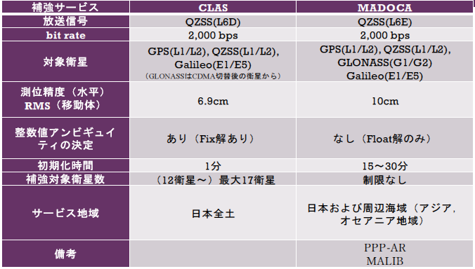 CLASとMADOCA-PPPには以下の違いがあります