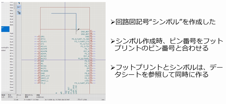 図1 シンボル作成の要点は,端子の正確な配置とパッド番号の整合.端子の多い部品は,整理された配置が回路図の可読性に直結するので,ライブラリ管理とシンボル設計を正確に行いたい.画像クリックで動画を見る.または記事を読む.[提供・著]善養寺 薫(ディスクリテック)