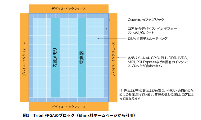| 図1 Efinix社のTrion FPGAは,安価ながらも高い柔軟性をもち,RISC-Vプロセッサの実装も可能.40nmプロセスのTrionシリーズは,I$^$2CやSPIに加えて,DDRやLVDSにも対応する.画像クリックで動画を見る.または記事を読む.参考:[VOD/KIT] 実習キットで一緒に作る!オープンソースCPU RISC-V入門 |