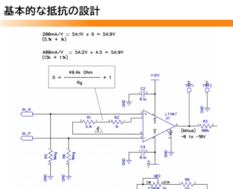 - 直列抵抗:2つの抵抗を足し合わせ,希望の抵抗値に調整