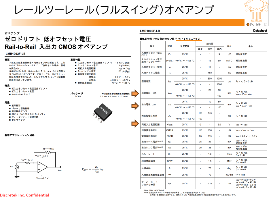これらの特性を理解することで,非反転バッファや単電源アンプ設計時の部品選定や回路設計の判断に役立ちます.出力範囲や入力範囲の制約を把握したうえで実験を行うと,レール・ツー・レールOPアンプの利便性を最大限活かすことができます.