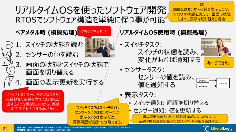 図1 Zynqでは,FreeRTOSを活用することで,リアルタイム性を確保しつつ,シンプルなコード構造で統合システムを構築できる.たとえば,センサ読み取りとキー入力,ディスプレイ表示を独立したタスクとして設計し動かせる.画像クリックで動画を見る.または記事を読む.[提供・著]中村 晋一郎 詳細:[VOD/KIT]ARM Cortex-A9&FPGA内蔵SoC Zynqで初体験!オリジナル・プロセッサ開発入門 |