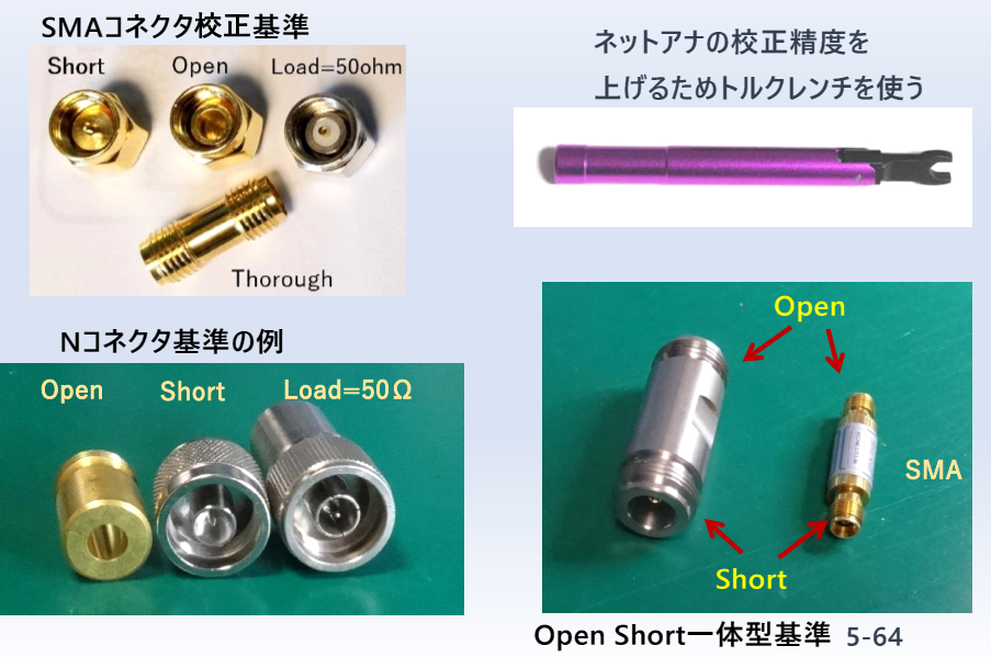 各基準器は,SMAやN型といったコネクタ形状に合わせたものを使用します.また,キャリブレーション時には締め付けトルクを一定に保つことが求められ,専用のトルク・レンチ(例えば,0.9N・m)を使うことで精度を確保します.