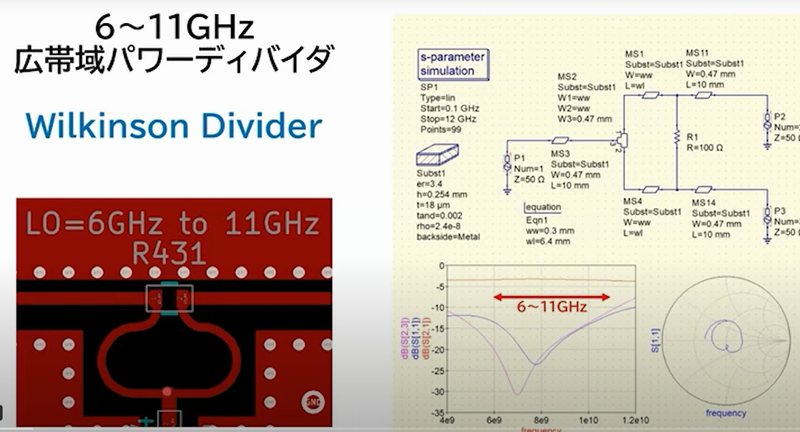 図1 ウィルキンソン・ディバイダは,高周波信号を2つに分配するマイクロ波回路.入力信号は等分に分配され,各出力ポートには約-3dBのパワーが到達する.画像クリックで動画を見る.または記事を読む.[著]加藤 隆志 詳細:[VOD]高速&エラーレス!5G×EV時代のプリント基板&回路設計100の要点【セッション4】低エラー・レート広帯域ディジタル変復調回路の設計技術 |