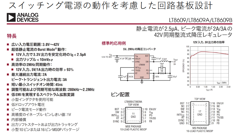 入力12V,出力5V/3A DC-DC電源IC LT8609A