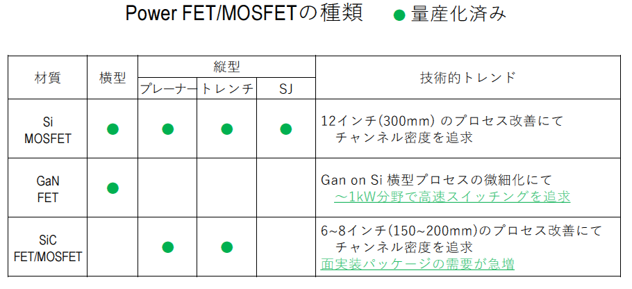 » GaNは横型,SiCは縦型