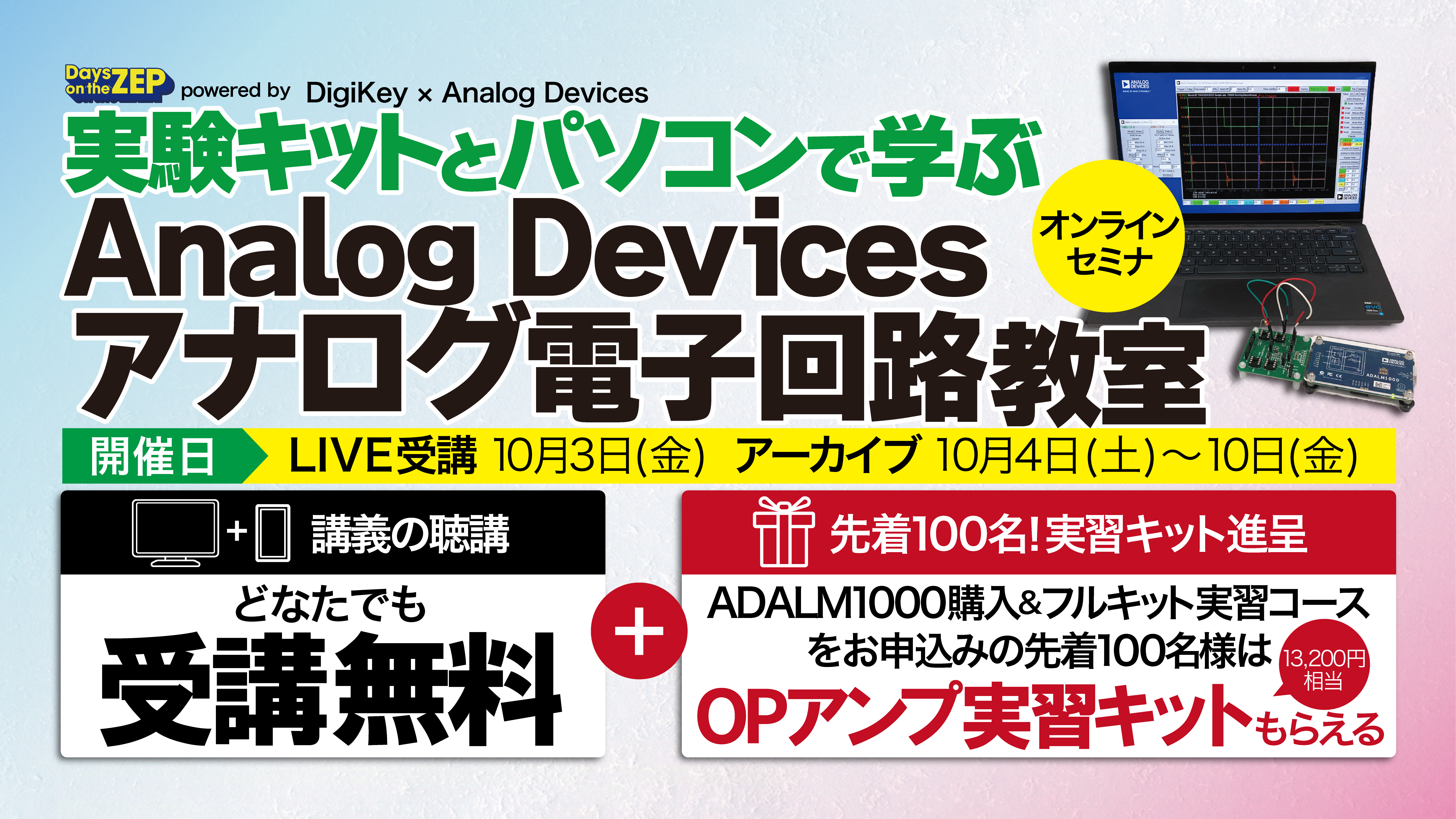 » [Webinar]実験キットとパソコンで学ぶ Analog Devicesアナログ電子回路教室