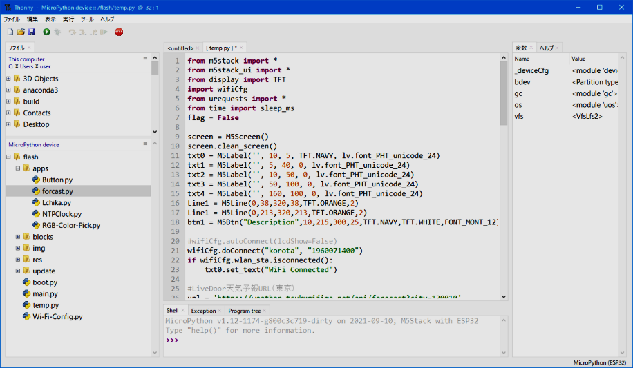 第1部では,UIFlowのファームウェアを使用し,MicroPython開発環境の構築と,M5StackのLCDとWi-Fiを使ったいくつかのアプリケーションを作成します.