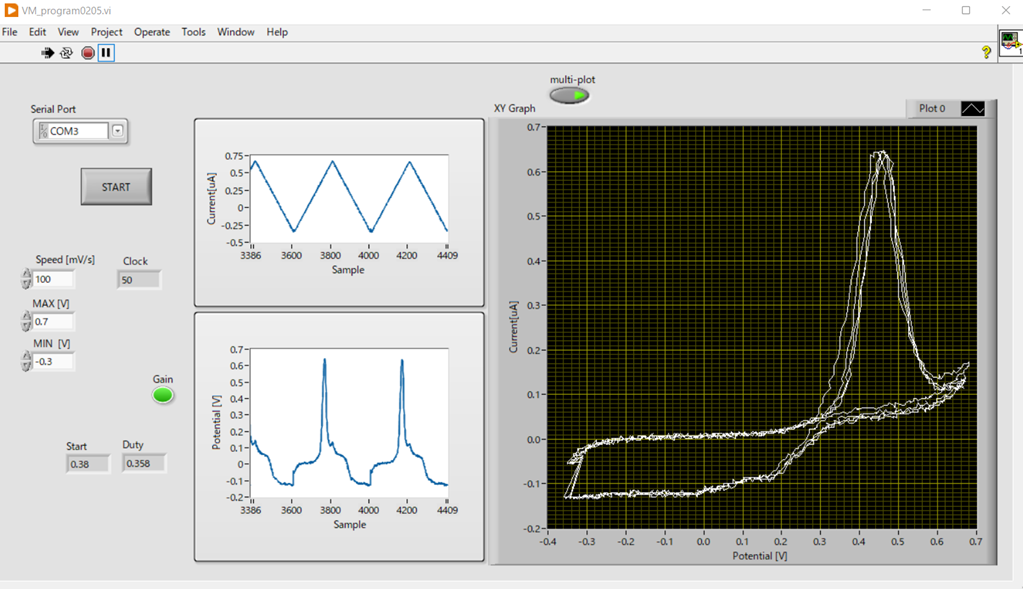 実際に電気化学分析手法の一つである「ポテンショスタット回路」で液体成分の分析について体験してもらいます.研究室などで「自作の電子回路を用いて実験システムを構築したい」と考えている人にとっては,LabVIEWを用いて容易に実験環境を整える方法を学ぶことができます.