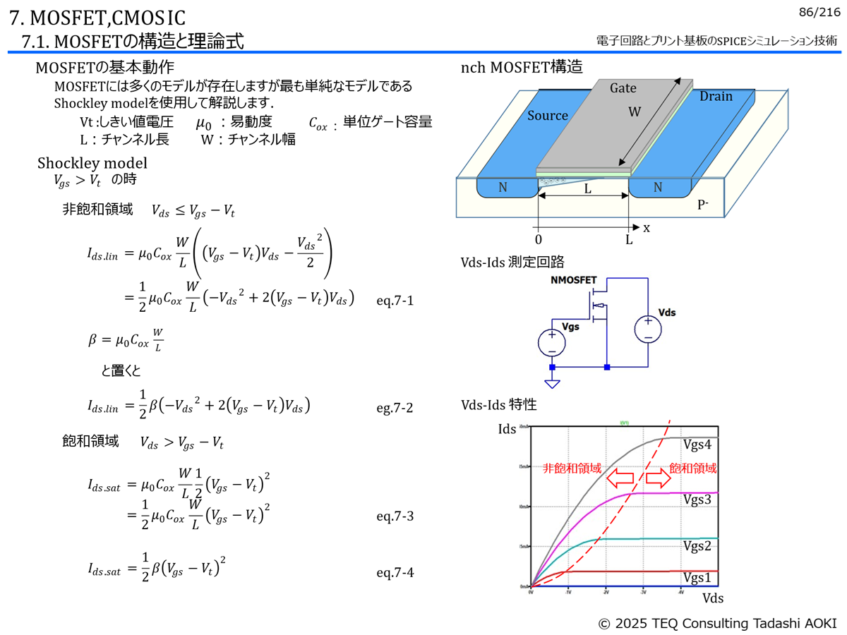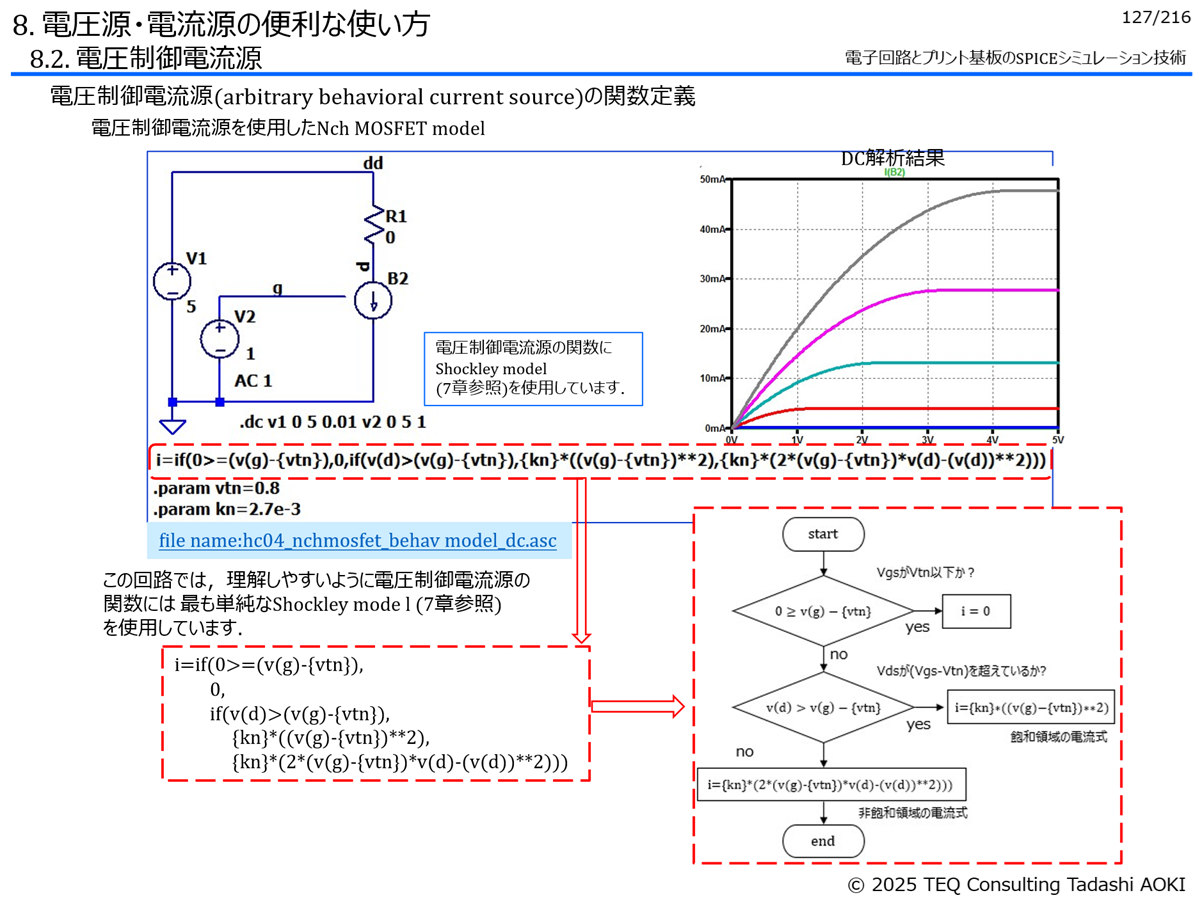 図3 MOSFETの物理構造と理論式 図4 MOSFETの動作を電圧制御電流源で再現する
