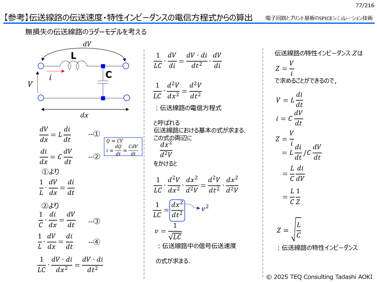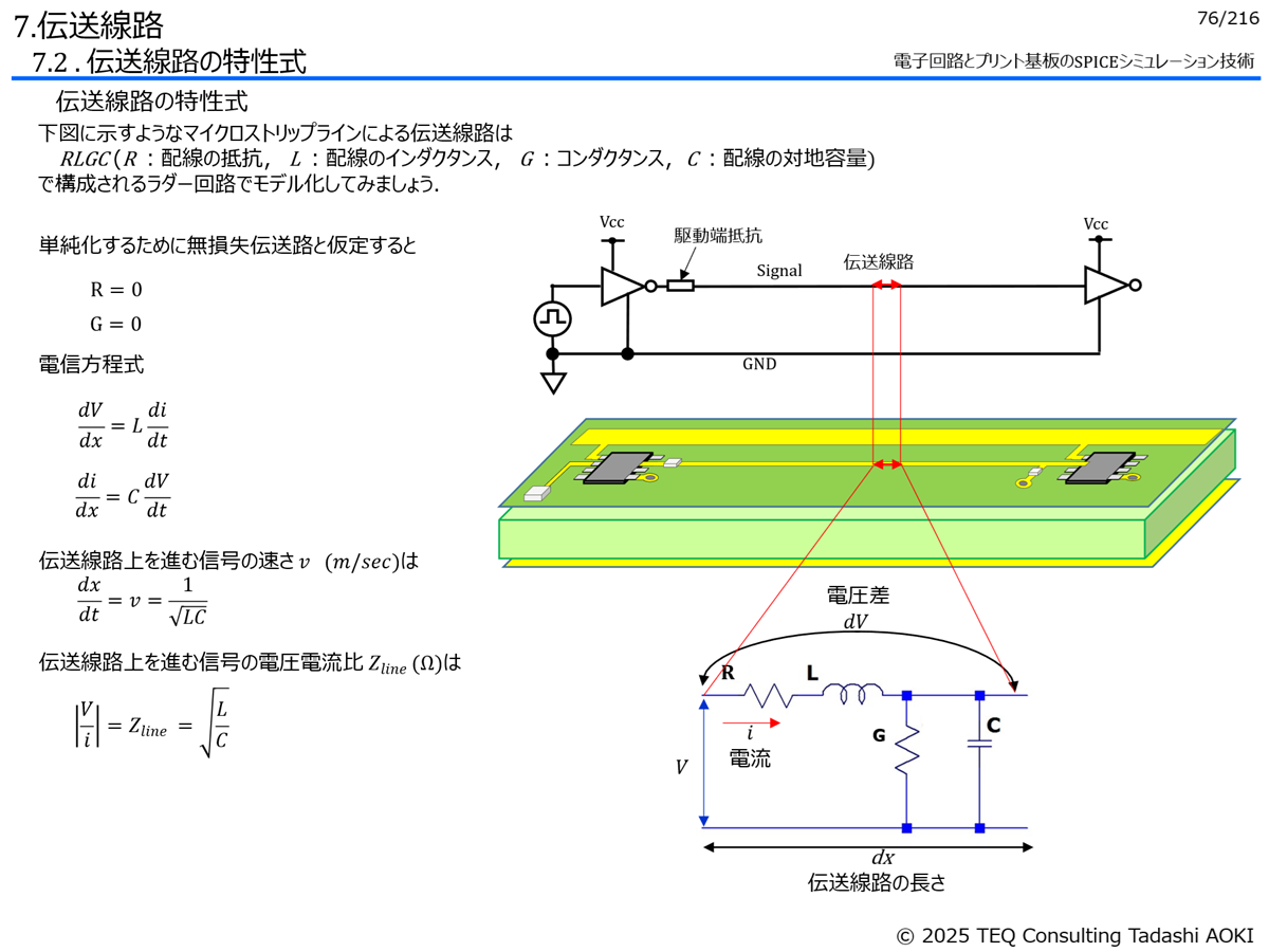 図1 伝送線路の基本特性 図2 伝送線路の伝搬速度と特性インピーダンスの導出