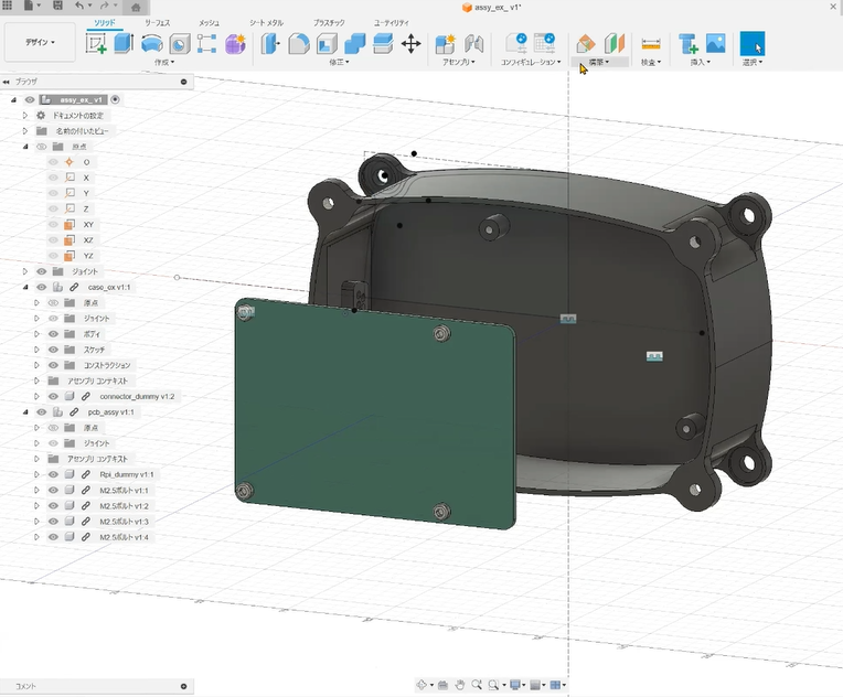 ケースにプリント基板を配置する