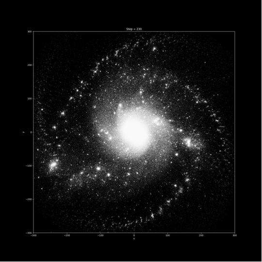 重力多体問題をベースに銀河をシミュレーションし,アニメーション化