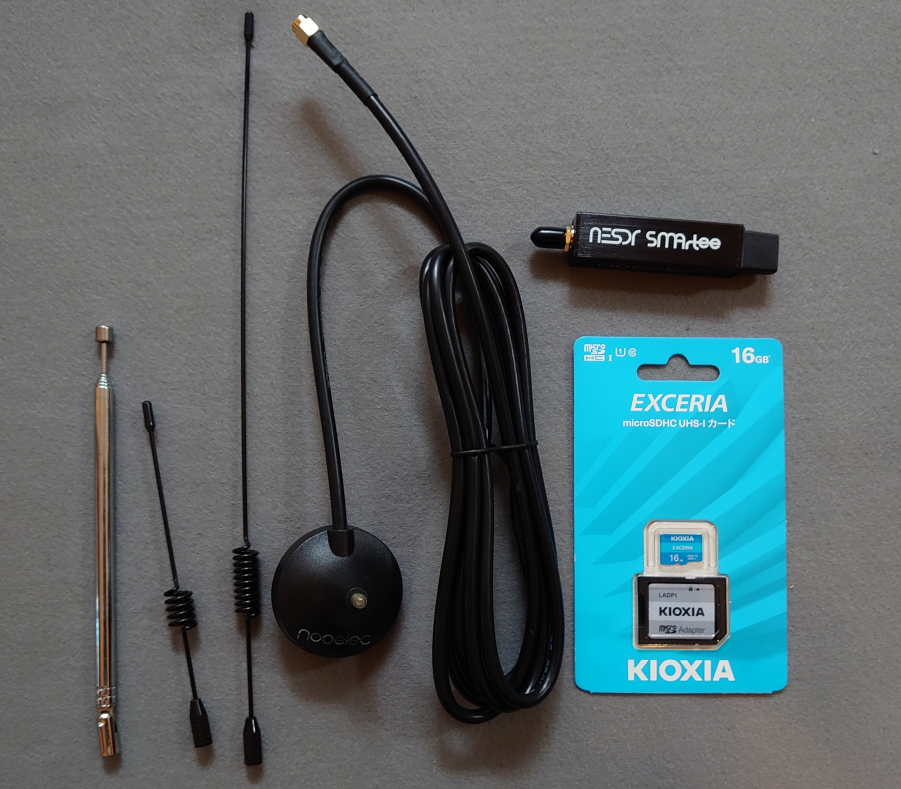 - SDRレシーバ“Nooelec NESDR SMArTee v2”(0.5ppm TCXO, SMA入力&3アンテナを装備)