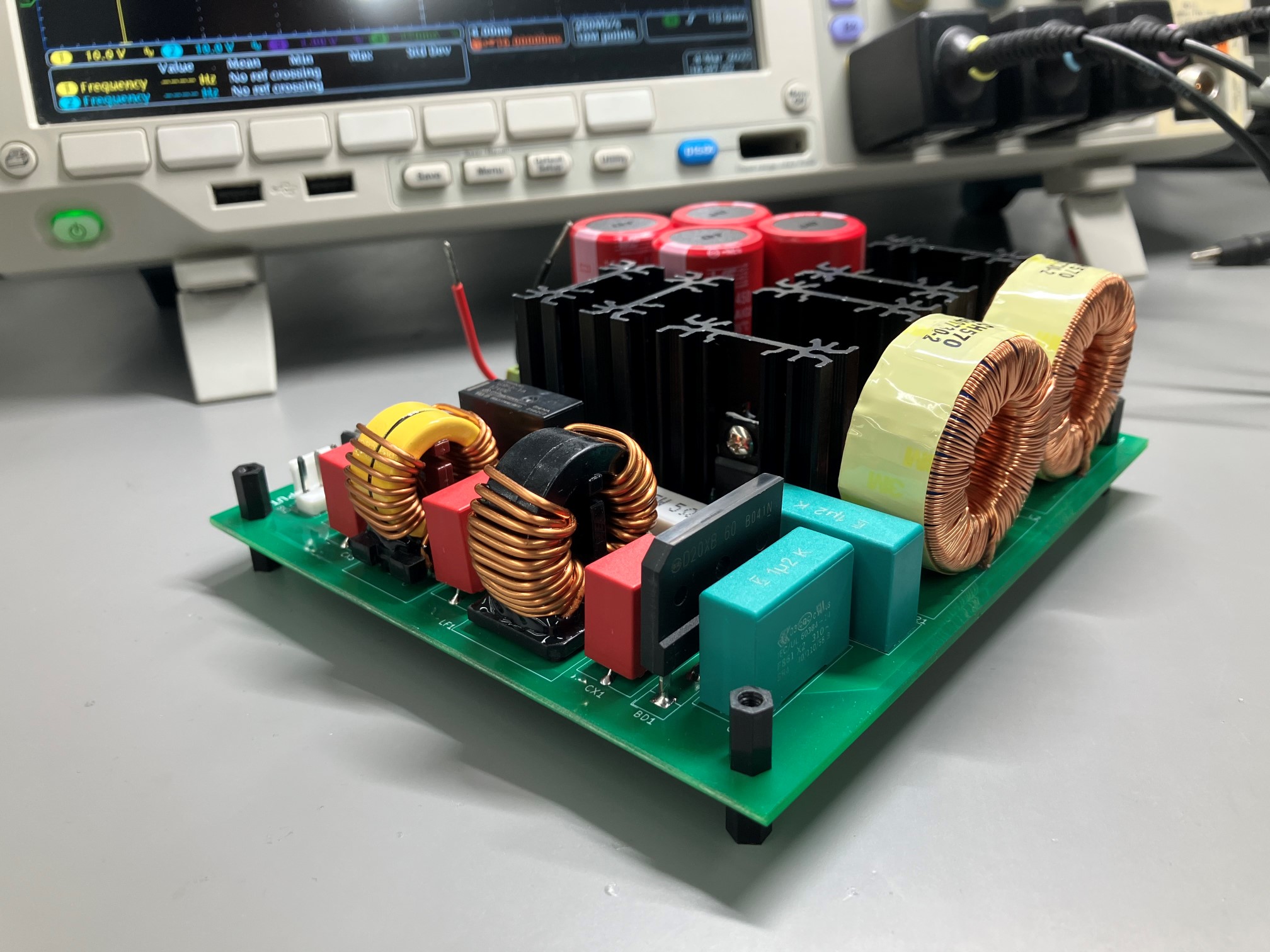 PFC(Power Factor Correction)は,電力供給の効率を改善するための技術であり,力率を高める目的で使用される.力率とは,実際に使用される有効電力と,供給される総電力との比率で,理想的な値は1.力率が低いと電力の浪費が発生し,発電所や配電設備に無駄な負荷がかかる.消費電力の大きい大型モニタやパソコンが多数存在するビルでは,この無駄な負荷が電力網に大きな負荷を与えるため,PFC技術が必須である.従来は,力率が低く,電流と電圧の位相差が大きくなり,無効電力が発生するコンデンサ・インプット型電源が多く使わていた.PFC回路を組み込むことで,電流と電圧の位相差が最小化され,力率が改善される.特にブリッジレスPFCは構造がシンプルで効率も高いため,電源ユニットの小型化に有効.〈ZEPエンジニアリング〉