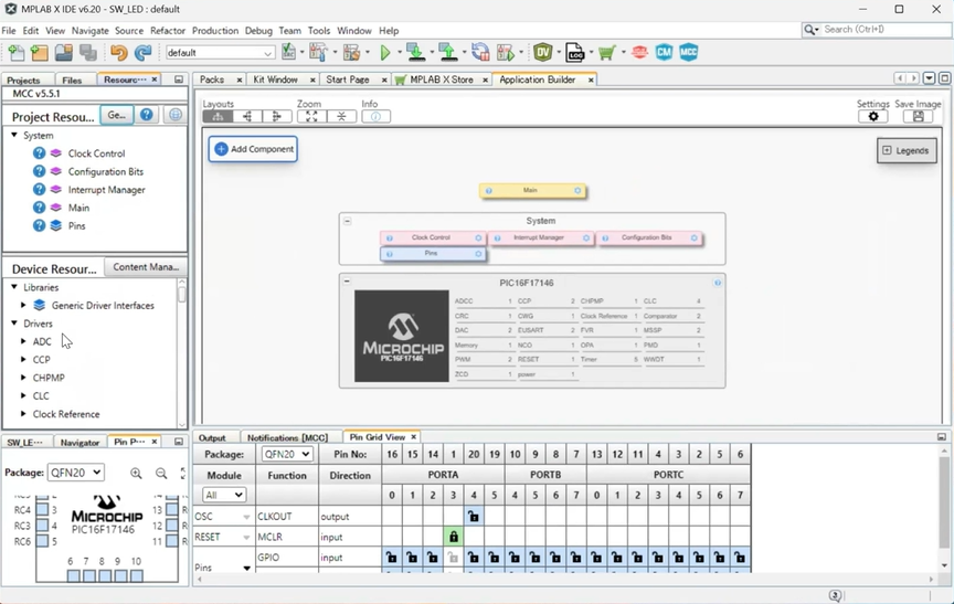 スタータキットにはPIC16F1シリーズの多彩な周辺モジュール(タイマ,PWM,UART,I2C,A-Dコンバータなど)が含まれています.これらを活用して基本から応用まで.マイコン開発に必要なスキルを段階的に習得することが可能です.プログラム作成には,MPLAB Code Configurator(MCC)Melodyを使用します.直感的なGUIを備えたMelodyは,タイマやPWMなどのモジュール設定をシンプルに行えるため,複雑なコード生成の負担を大幅に低減します.エラーを最小限に抑えながら効率的に開発を進められる点も特長です.