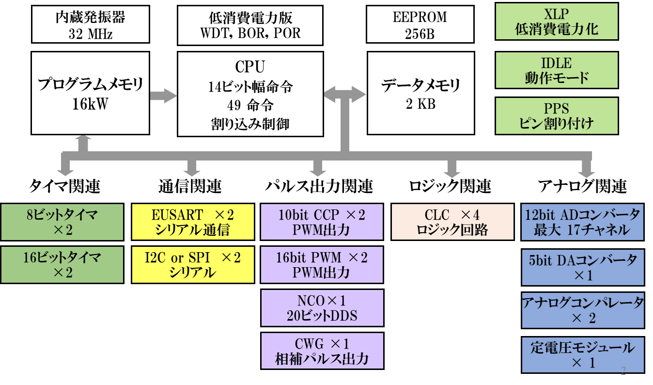 PIC16F17146の構成と,実習ボードに搭載されたEV72J15A Curiosity Nano Boardの概要