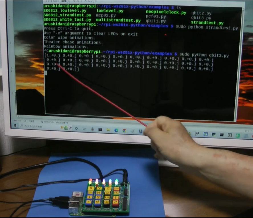 - 量子演算学習ボードの動作チェック① ボタン操作/LED動作のチェック,位相の表し方(9分21秒)